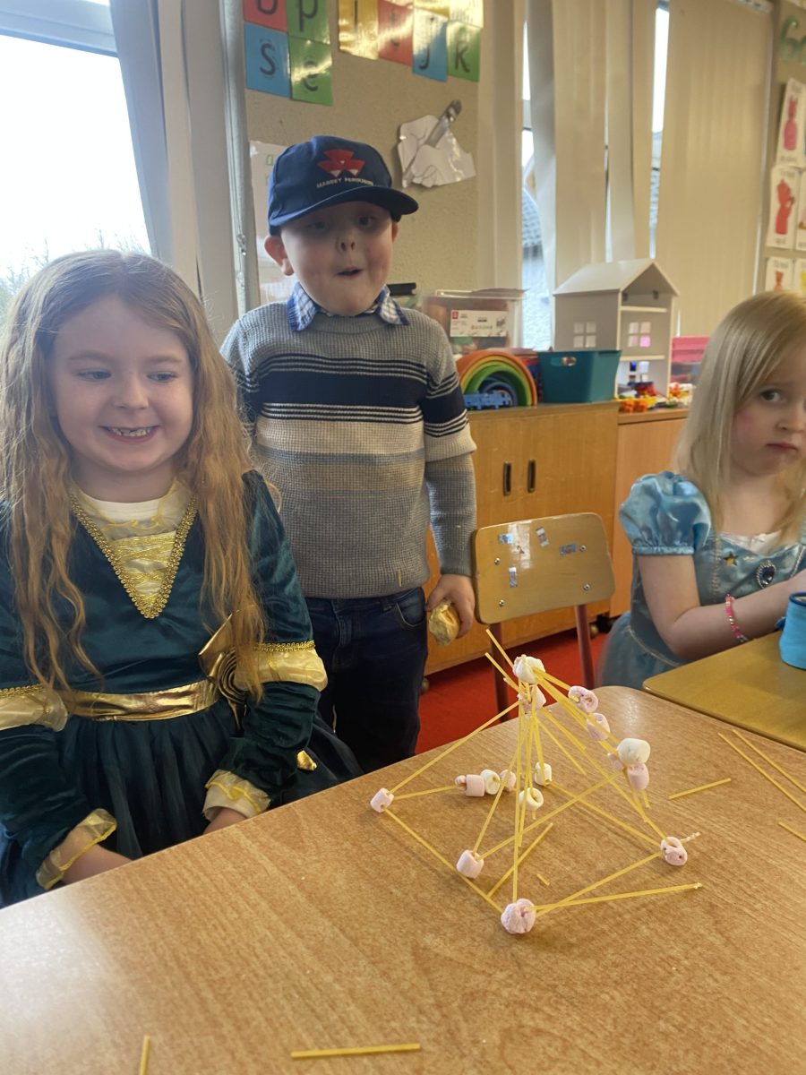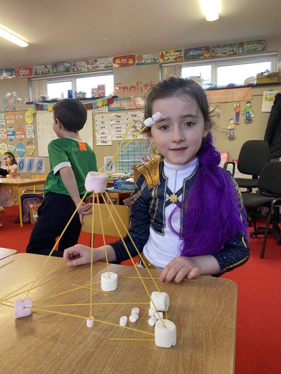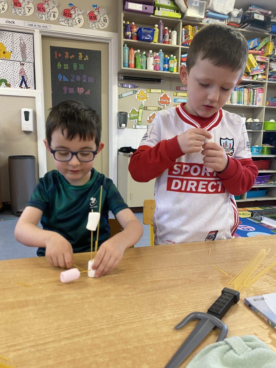 Our Junior and Senior Infants tested their build and design skills this week with the marshmallow tower challenge. Each pupil constructed a tower using only marshmallows and spaghetti. We discovered through trial and error the importance of strong foundations.
