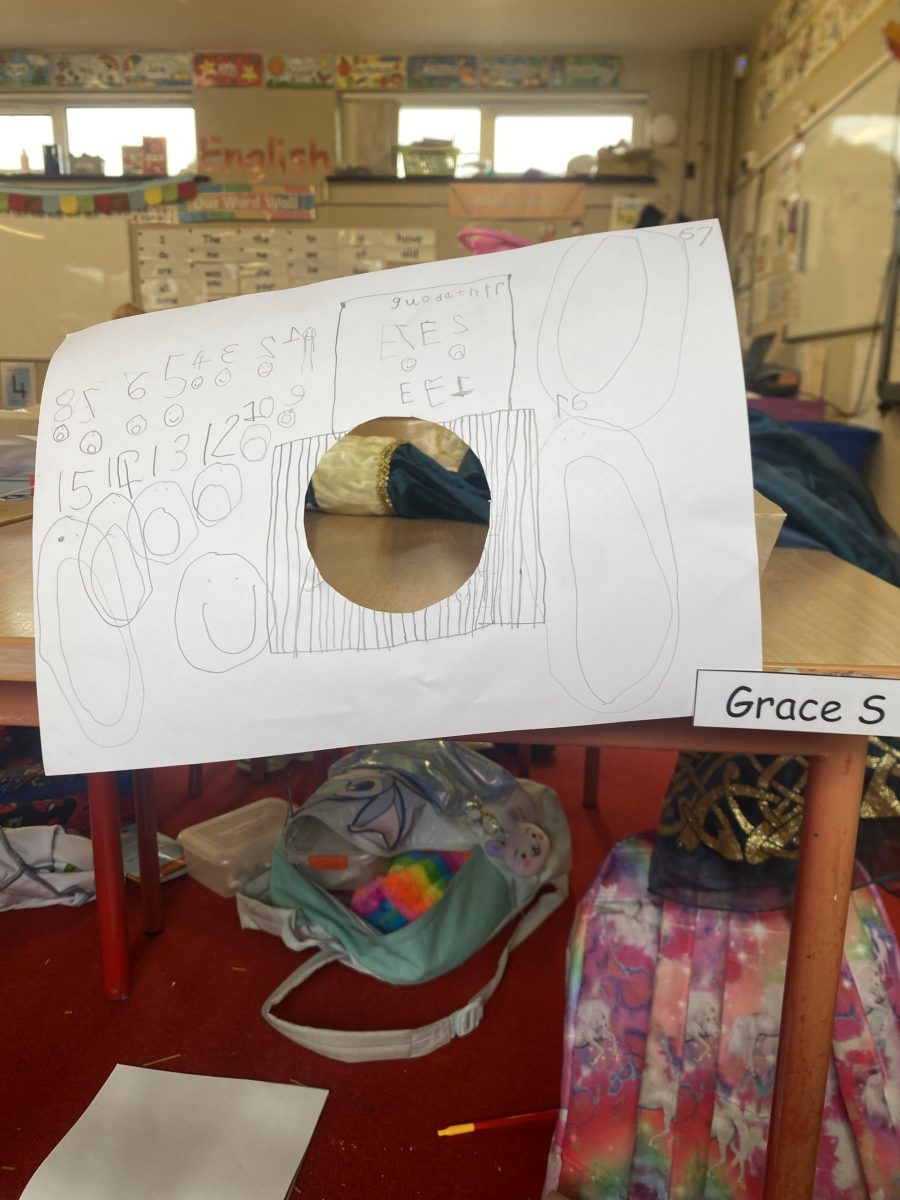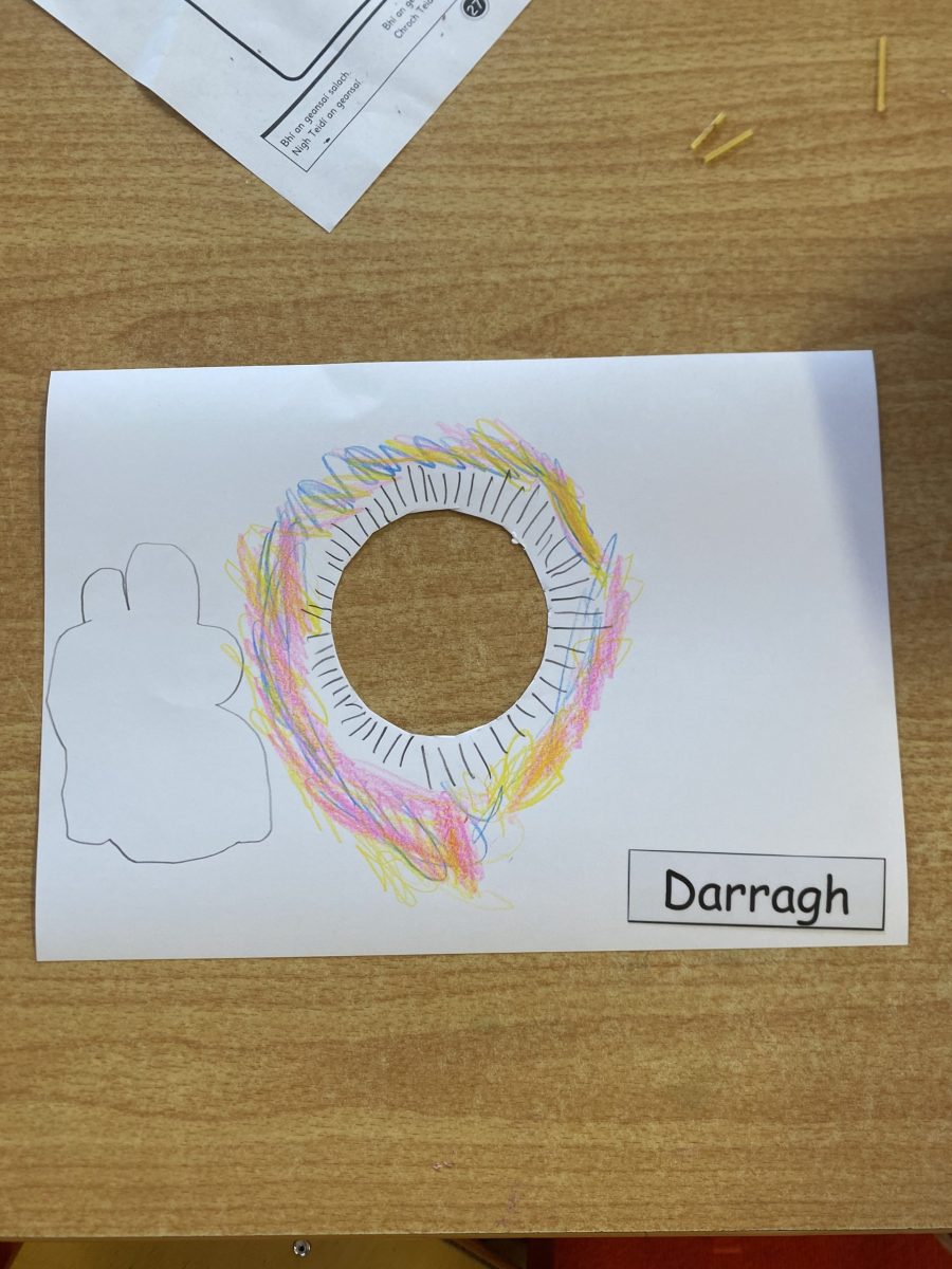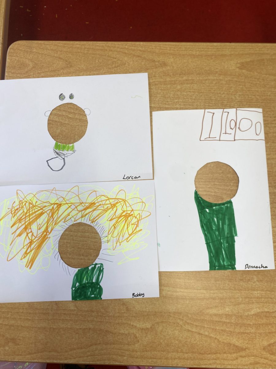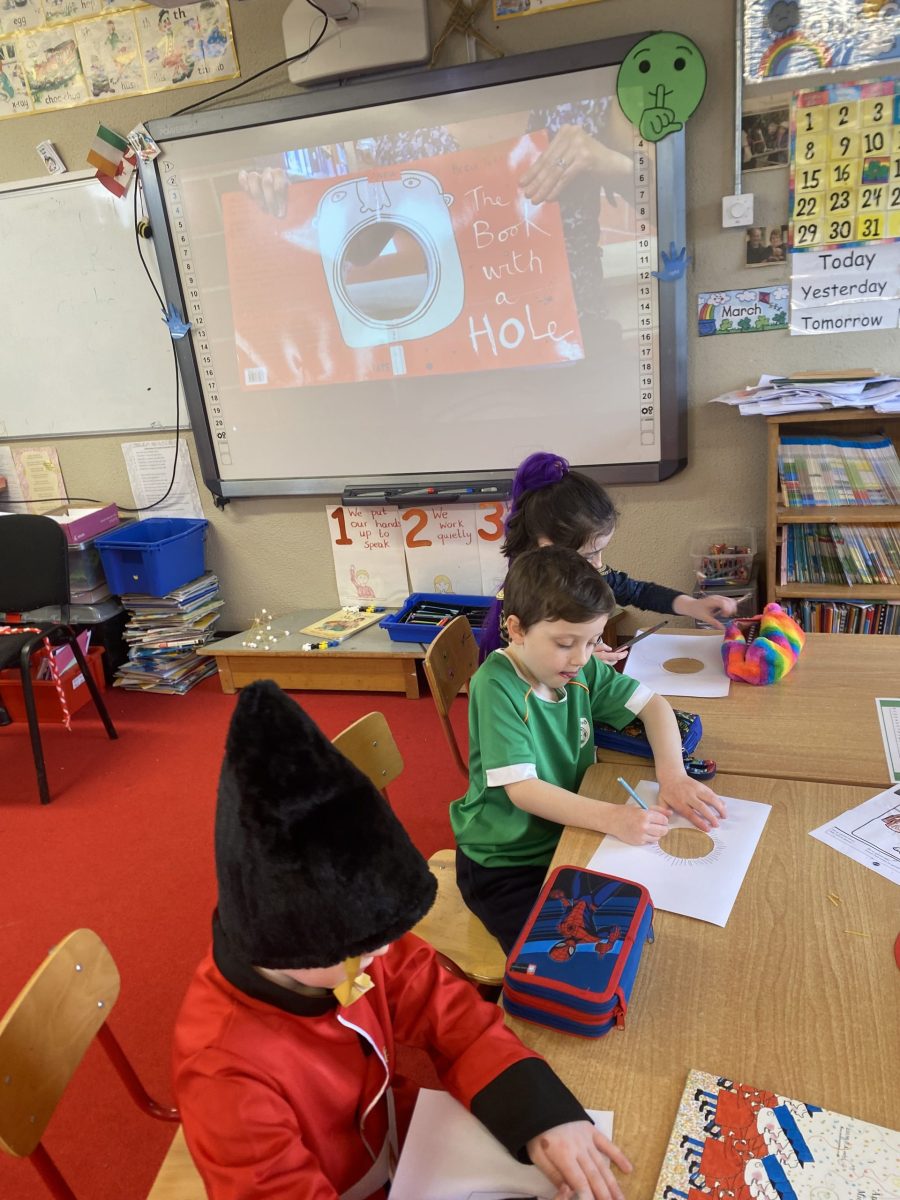 As part of Engineers Week we also read the book entitled The Book with a Hole by Hervé Tullet, using the book as inspiration we created our own pictures from a page with a hole! Ms Brennan was very impressed with the brilliant drawings the children created around the hole in the page.